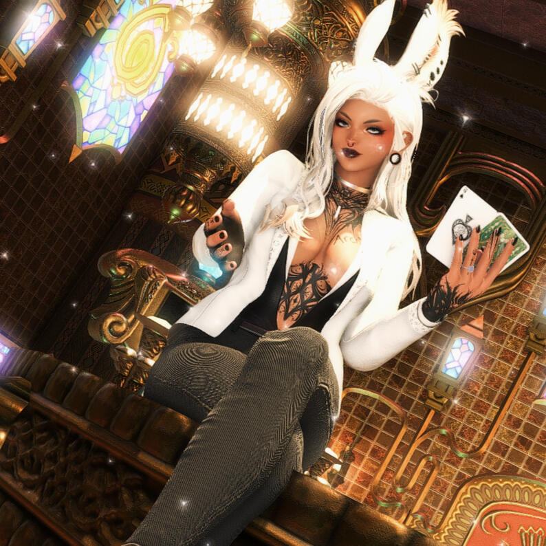 Age: 32Pronouns: She/HerCharacter Race: Au'ra GirlRole: Gposer/Gamba Dealer/Housing Designer/ManagementShort Bio: Haiiii My name is Nyx, Archie's wife ;). I am a social butterfly that loves meeting new people and dealing blackjack with my husband and friends! I love taking photos and making people smile. I've been playing this game consistently since 1.0 and i don't see myself stopping anytime soon!