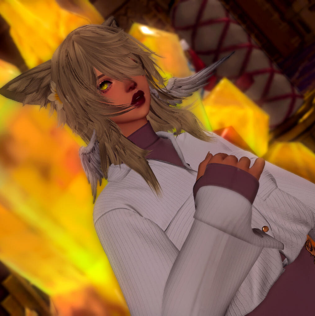 Age: 30Pronouns: she/theyCharacter race: HyurRole: gposer, poster maker, graphics artist, carrd designer, shoutrunnerBio: maker of pictures, writer of things, and wielder of many alts, I've been playing FFXIV on and off since 2014; my most recent run began in 2020. I'm an avid gposer, roleplayer, and self-taught After Effects artist. I started on the venue scene in 2022 as a bartender, but have since expanded to most other roles (though I prefer shoutrunning).